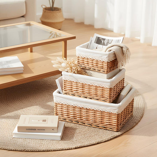 3er-Set Aufbewahrungskörbe aus Weide - Weißer StoffAUFBEWAHRUNGSKÖRBENeue3er-Set Aufbewahrungskörbe aus Weide - Weißer StoffAUFBEWAHRUNGSKÖRBENormaler Preis 32,63 €Normaler PreisGrundpreis / proVerkaufspreis 32,63 €Nouveau