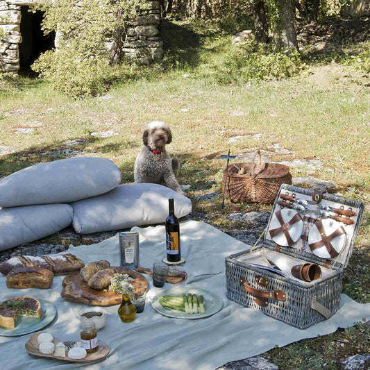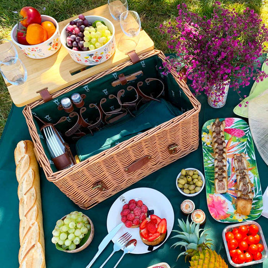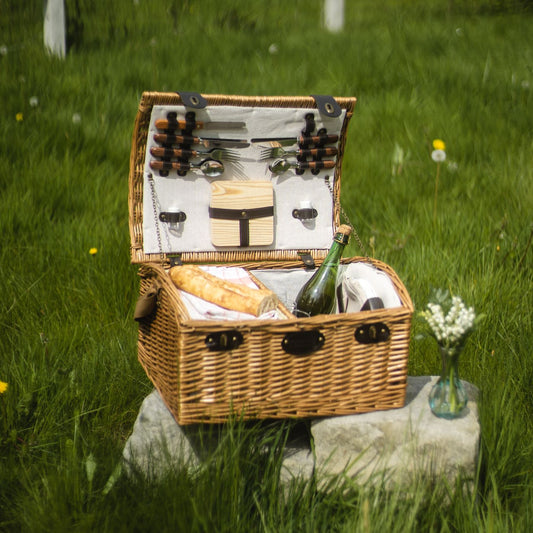 ● Ein Picknickkorb für 4 Personen: Das beste Format für einen Picknickkorb bleibt das für 4 Personen konzipierte Format, und zwar aus zwei wesentlichen Gründen. Erstens, weil ein Picknickkorb für 4 Personen perfekt für einen Ausflug zu zweit geeignet ist, da der gewonnene Platz für eine Decke oder ein Picknickdecken genutzt werden kann. Zweitens, weil ein Korb für 4 Personen auch für 5 oder 6 Personen geeignet sein kann, wenn man den verfügbaren Platz optimal nutzt.