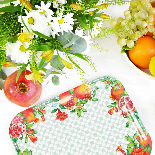 Transportieren Sie Ihr Geschirr bequem und ohne Bruch mithilfe eines großen Tabletts aus extrem widerstandsfähigem Melamin. Das rechteckige Tablett wird Ihnen für alle Ihre Essenstabletts dienen, ob vor dem Fernseher oder im Garten! Ein Muss für jedes Zuhause! Ihr Designtablett Les Jardins de la Comtesse kann stolz auf der Küchenkredenz oder auf Ihrem Wohnzimmertisch thronen.