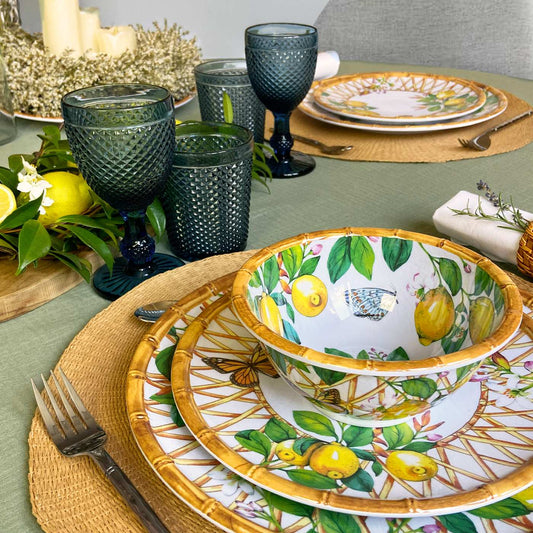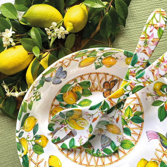 Lassen Sie sich mit unserer neuen Melamin-Geschirrkollektion "Capri", die Teil der MelARTmine Collection ist, in die Ferne entführen. Reisen Sie mit dieser neuen Melamin-Geschirrkollektion in Richtung der italienischen Insel Capri. Die zitronigen Motive, die von einem milden Sommer im Süden inspiriert sind, bringen die Sonne des Mittelmeers auf Ihren Tisch.